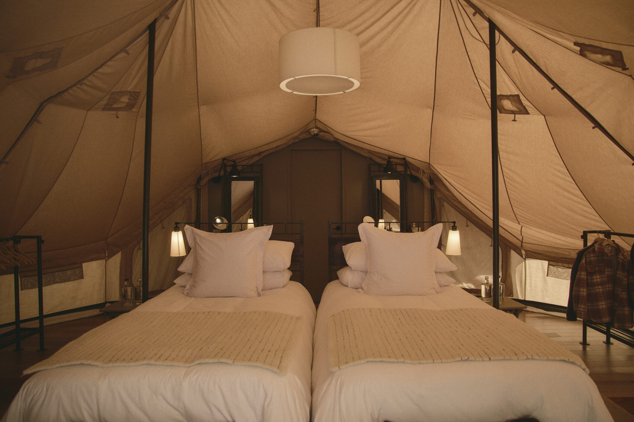 The property features six "campamentos" - tented suites built on stilts to reduce environmental impact - each equipped with private decks containing open-air hot tubs for stargazing in the high-altitude setting.
