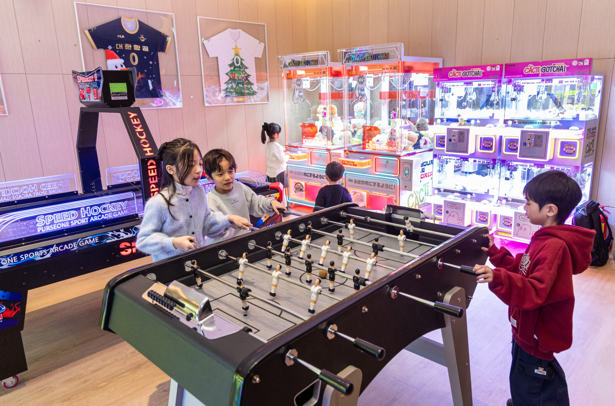 Another addition is an arcade room aimed at families and younger travellers. It includes photo booths, claw machines, air hockey and car racing games. This area reflects a broader shift in airport lounge innovation, recognising that not all passengers want a calm, silent environment and that play can be part of the premium travel experience.