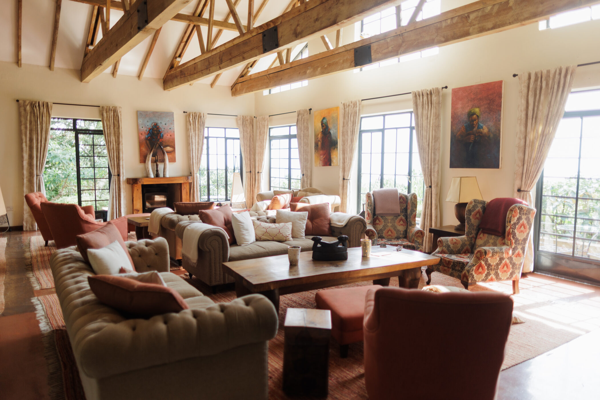 Bwindi, by contrast, is all altitude, mist and vertiginous beauty. Churchill once called it the “Switzerland of Africa”, and from Clouds Mountain Gorilla Lodge – perched on Nteko Ridge at around 2,100 metres – the comparison doesn’t feel far-fetched. Volcanic-stone cottages come with double-sided fireplaces, Ugandan art, and thick carpets woven by local collectives. The herb garden is alive with bees and patrolled by a couple of rhinoceros chameleons advancing with slow, prehistoric intent.